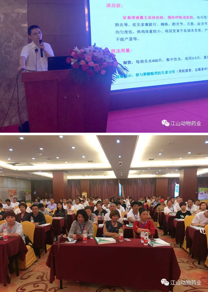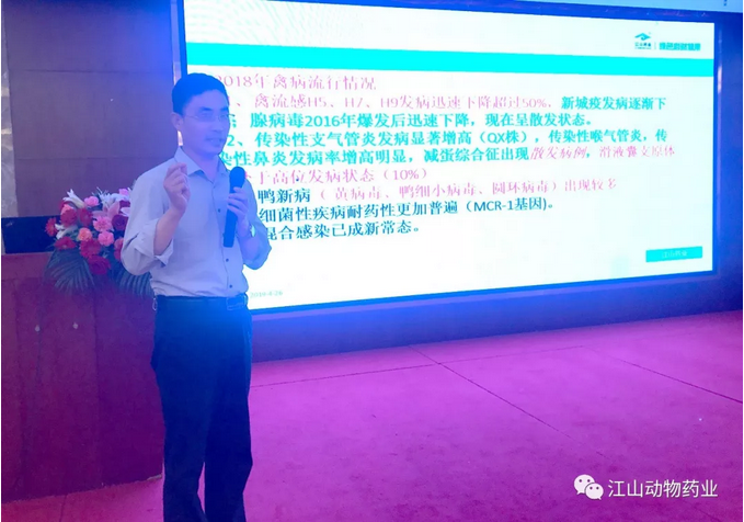 孟志敏副總經理為大家講解重要禽病的流行動態分析及雞的----滑液囊支原體病。