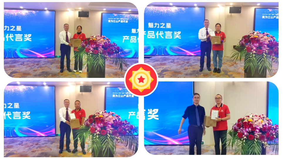 峰會的第二個環節為產品代言環節。江山實力經銷商苗文歡、李歡歡分享了自己的創業經驗并用實際案例講解了江山優秀產品的使用方法及配伍。知名獸醫師趙晉明老師和陰恒雄老師也從技術層面講解了江山藥物在臨床中的使用方法。米國華先生和孟志敏先生為合作伙伴頒發了魅力之星——產品代言獎。