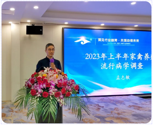 峰會的第一個環節為“方案為王,實踐出真知”。副總經理孟志敏先生深入講解“2023年上半年家禽養殖流行病學調查”的分析,孟總指出2023年上半年傳支、H9、支原體等相關病原持續高發,對養殖業危害巨大,垂直傳播類以及免疫抑制類疫病呈現增長趨勢需重點關注。